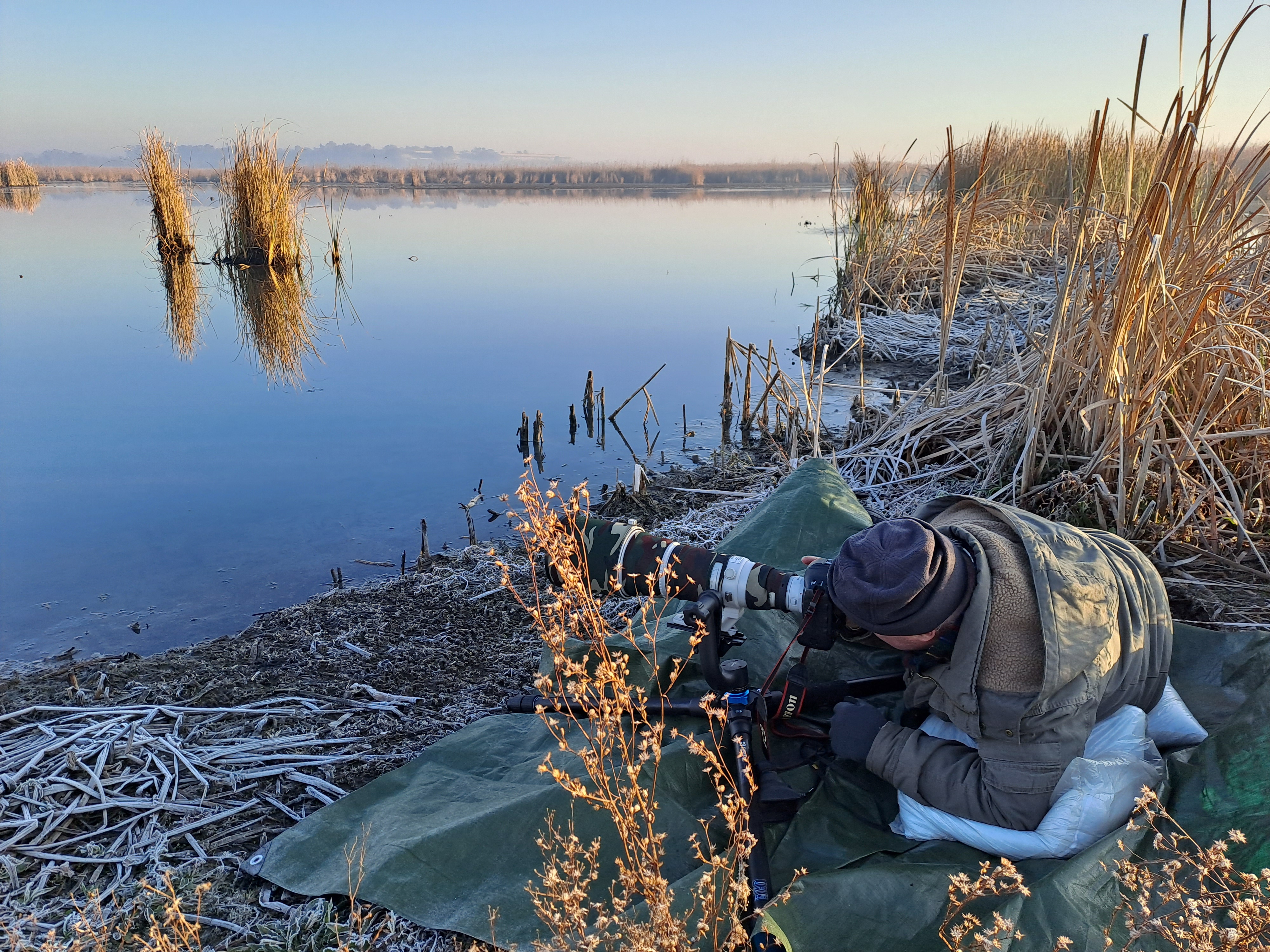 It was still dark and the temperature was at 0C. With the bank facing east to get some silhouetted rim lit images of the birds as the sun stared to rise, I thought that this was the ideal spot but, in the end, that turned out to be the wrong decision.