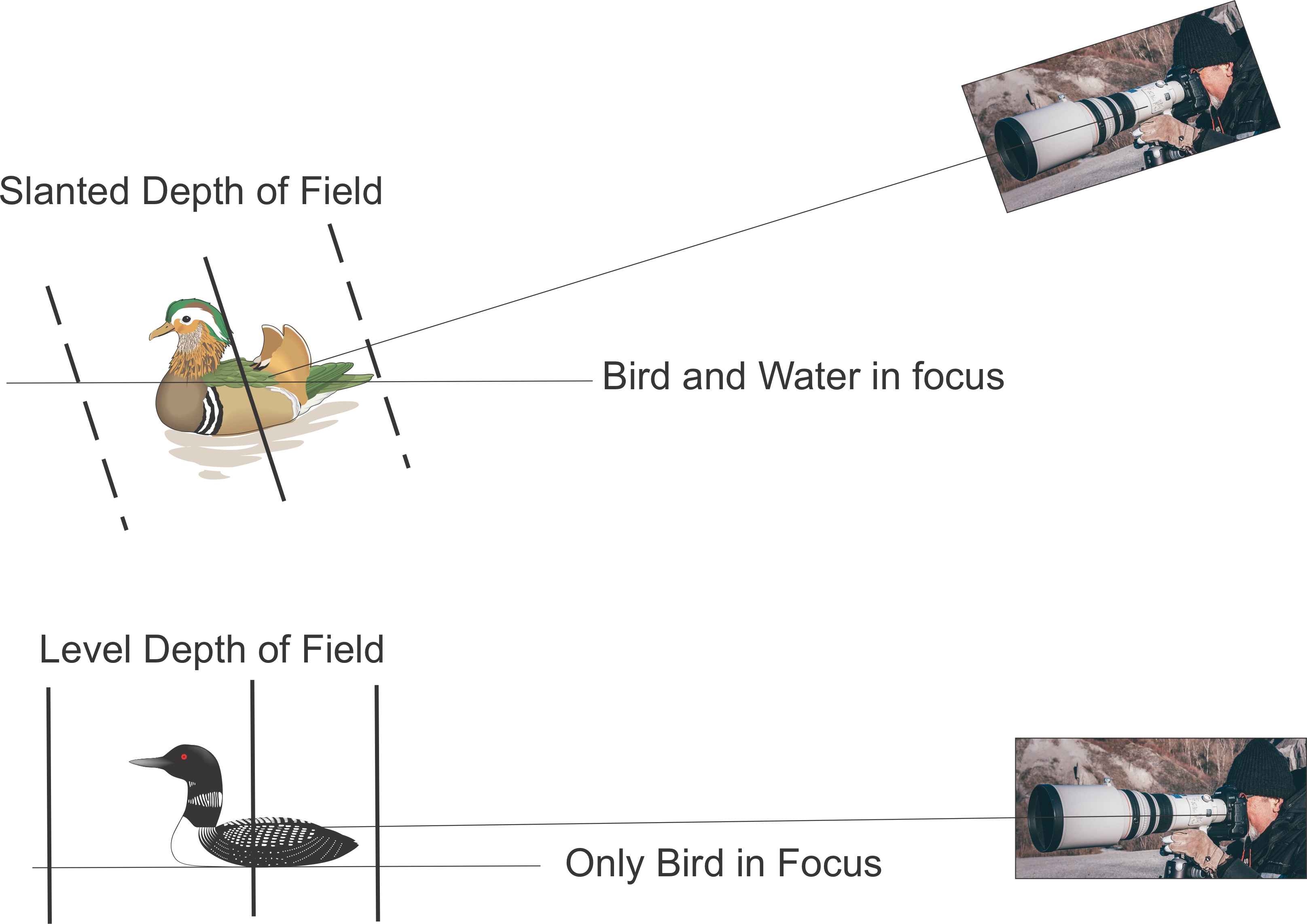 To further illustrate the effect of depth of field angle, here is an image below that I took at Marievale some time ago from a hide with a slanted depth of field. (I was at least 1 meter higher than the water)